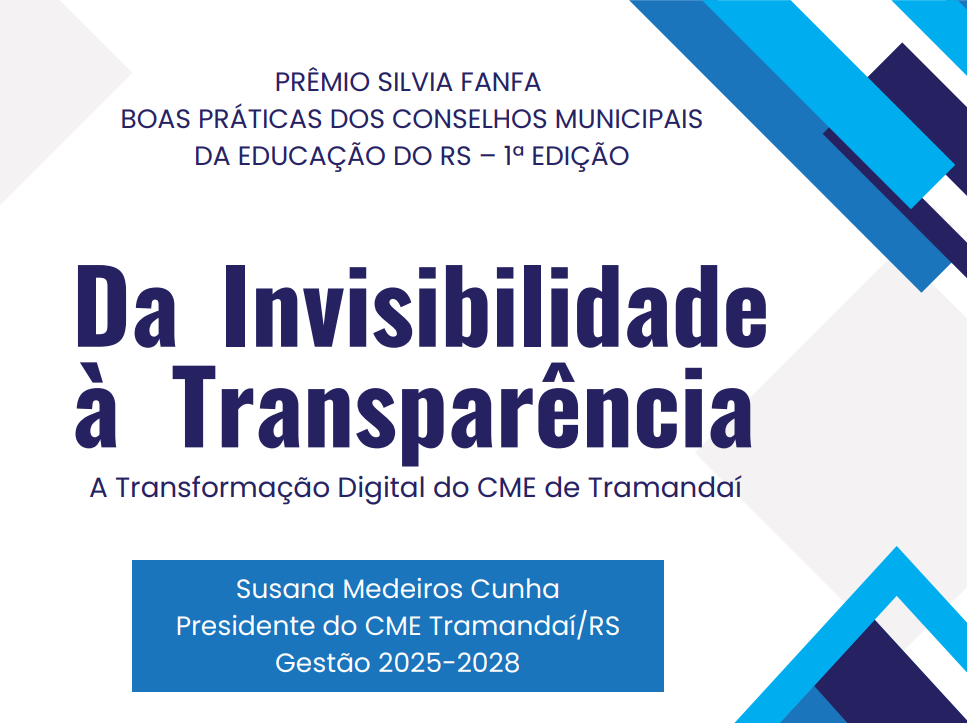 A prática vencedora, intitulada “Da Invisibilidade à Transparência: a transformação digital do CME de Tramandaí”, destacou-se por promover a aproximação entre o Conselho e a sociedade civil, por meio da criação de um portal digital próprio e da atuação ativa nas redes sociais. A iniciativa fortaleceu a transparência institucional, o controle social e a gestão democrática da educação no município.