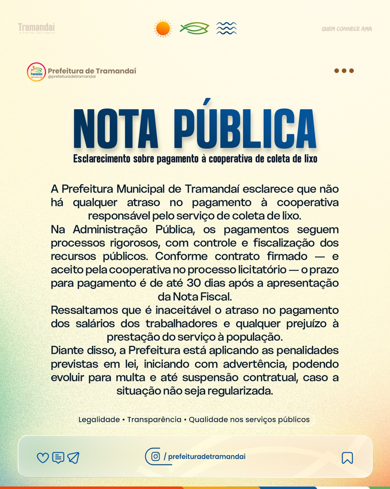 A Administração Municipal reafirma seu compromisso com a legalidade, a transparência e a qualidade dos serviços prestados à comunidade.